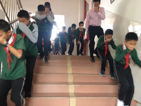 10日上午,第一節(jié)課下課,火災(zāi)警報(bào)聲響起。學(xué)生們立刻拿出平時(shí)備用的小毛巾,用礦泉水澆濕并捂住口鼻,在老師的帶領(lǐng)下彎腰有序地撤離火場(chǎng),跑向遠(yuǎn)離火場(chǎng)的指定安全地點(diǎn)。小學(xué)部只用了4分多鐘,一千多名學(xué)生安全有序地疏散到指定地點(diǎn)。中學(xué)部最快的班級(jí)在不到46秒鐘就集中完畢,共耗時(shí)1分51秒。逃生時(shí)沒(méi)有發(fā)生擁擠、踩踏事故。
