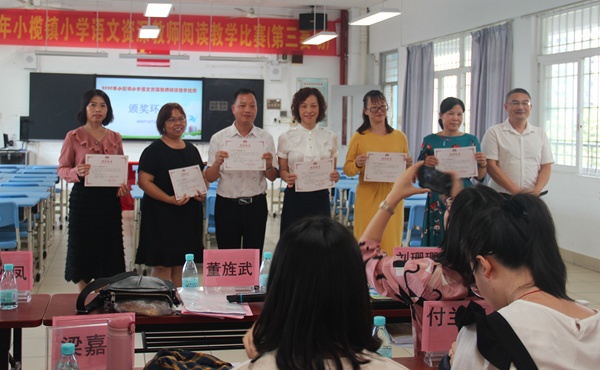 最后,董旌武校長宣讀比賽結(jié)果并頒獎(jiǎng),并與在座的評(píng)委老師和參賽老師合影留念,2020小欖鎮(zhèn)小學(xué)語文資深教師閱讀教學(xué)比賽(第三賽場)圓滿落下帷幕!