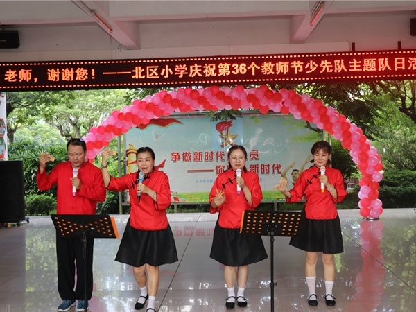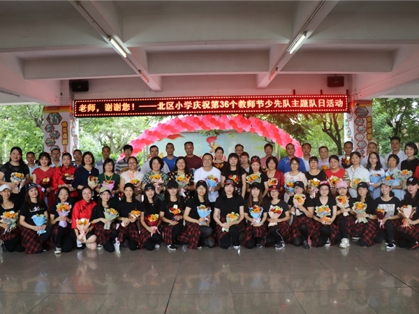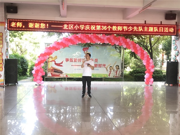 有人說:您是辛勤的園丁,用知識做露珠,培育祖國的花朵;有人說,您是無私的蠟燭,傾盡畢生精力,燃燒自己照亮別人??赡鷧s說:桃李滿天下,是您一生的夙愿;三尺講臺上的英姿颯爽,是您永遠(yuǎn)的眷戀。您,就是這樣一個可愛可敬、和藹可親的人,像太陽,溫暖著學(xué)生的心;像月亮,照亮漆黑的夜空;像星星,指引夜行的身影;像雨露,滋潤著世界萬物!9月10日,迎來了第36個教師節(jié),北區(qū)小學(xué)慶祝第36個教師節(jié)少先隊主題隊日活動在教學(xué)樓一樓大堂拉開帷幕,一出出精彩好戲輪番上演!