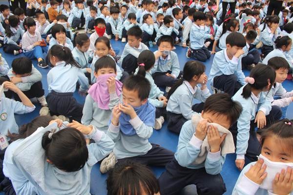下午四點(diǎn)半,隨著警報(bào)的響起,學(xué)校應(yīng)急疏散演練指揮部總指揮下達(dá)了“教學(xué)樓發(fā)生火災(zāi),請(qǐng)同學(xué)們立即撤離”的命令,緊接著,該校各班班主任老師迅速到達(dá)班上組織學(xué)生疏散,其他老師們也在第一時(shí)間趕到自己當(dāng)時(shí)所在樓層拐彎處、樓梯口等地方配合疏散學(xué)生、保證學(xué)生疏散安全。各班學(xué)生在老師們的指揮下,彎著腰、貓著步、用手帕、毛巾等捂住口鼻,沿著學(xué)校指定樓梯口快速前進(jìn),有序、安全地集中到學(xué)校操場(chǎng),耗時(shí)1分15秒,隨后各班班主任清點(diǎn)人數(shù),并層層上報(bào),全校一千余名師生全部安全疏散完畢;最后由本次活動(dòng)負(fù)責(zé)人何波主任對(duì)疏散演練進(jìn)行了詳細(xì)的總結(jié),他表?yè)P(yáng)了在本次演練中撤離迅速安靜的班級(jí),并強(qiáng)調(diào)一旦身邊發(fā)生突發(fā)事件,要沉著應(yīng)對(duì),做好及時(shí)報(bào)告和安全逃生工作,有效掌握在危險(xiǎn)環(huán)境中迅速逃生、自救、自護(hù)的基本方法,確保生命安全。