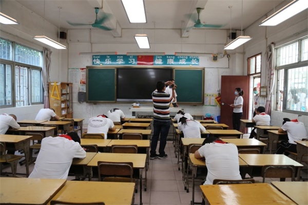 學(xué)生在教室午休,各班安排專門學(xué)生對教室通風(fēng)進行監(jiān)督,保持室內(nèi)空氣流通,課桌擺放的要求是單人單桌,盡量拉開距離。在校午休學(xué)生進入教室后,由班主任再次逐一對學(xué)生進行體溫檢測,當(dāng)檢測有學(xué)生體溫異常時,班主任老師馬上詢問該生情況,并報告給現(xiàn)場處置組長,由校醫(yī)帶至隔離區(qū)按相關(guān)流程處理。在教室午休時,學(xué)生不得下位走動,保持安靜。午休期間安排校醫(yī)在校醫(yī)室值班,應(yīng)對突發(fā)疾病。如午休期間學(xué)生出現(xiàn)發(fā)熱癥狀,應(yīng)向值日老師報告,值日教師馬上通知校醫(yī)按相關(guān)流程處理。