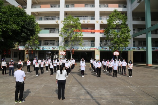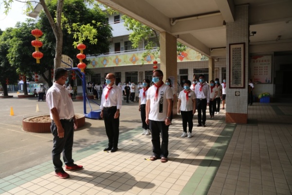 芳菲四月,春暖花開,隨著疫情防控的逐步穩(wěn)定,同學(xué)們開學(xué)即將拉開帷幕。為貫徹落實上級關(guān)于新冠肺炎防控工作部署,全面做好學(xué)生返校復(fù)學(xué)的準(zhǔn)備,切實保障全體師生身體健康和生命安全,4月30日上午,績東一小學(xué)開展疫情防控工作實戰(zhàn)演練,對返校復(fù)學(xué)后疫情防控工作各環(huán)節(jié)進行模擬演示。參與本次演練的有績東一小學(xué)的全體教職工, 小欖鎮(zhèn)教育事務(wù)指導(dǎo)中心教育干事周淑萍女士、法制副校長胡世堅先生、健康衛(wèi)生駐校副校長吳引和先生、小欖疾控中心盧醫(yī)生等領(lǐng)導(dǎo)及兄弟學(xué)校領(lǐng)導(dǎo)、黨員親臨學(xué)校督導(dǎo)觀摩演練工作。