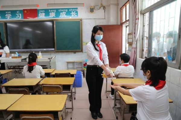 演練伊始,首先由李彥峰校長做動員講話,他分析了目前的疫情防控形勢,要求全體教職工務(wù)必高度重視,通過演練打通學(xué)校開學(xué)工作流程的堵點,進一步驗證和完善開學(xué)總體工作方案的科學(xué)性和嚴(yán)密性,為順利開學(xué)做好準(zhǔn)備。隨后,演練正式開始,本次模擬演練針對復(fù)學(xué)后最可能發(fā)現(xiàn)疫情的幾個重要節(jié)點,模擬了入校體溫篩查、午餐午休、錯峰放學(xué)、放學(xué)后消毒、應(yīng)急處置六個場景。以便讓教職工進一步清晰學(xué)生返校復(fù)課后各項防控工作流程和要求。