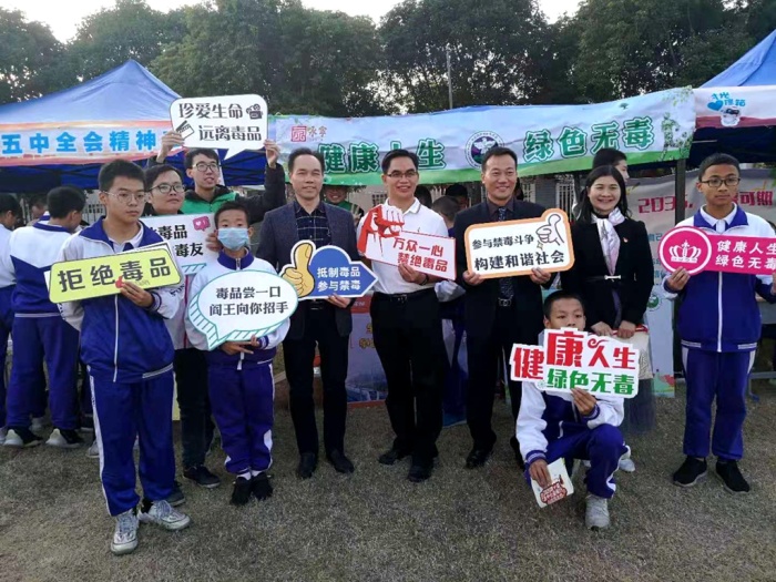 小欖鎮(zhèn)教體局教指中心鄧永飛副主任、永寧社區(qū)黨委伍錦華書記、郭釗榮副書記、永寧中學(xué)陳清茂校長、永寧社區(qū)社教辦麥林坤主任親臨活動現(xiàn)場,并倡導(dǎo)同學(xué)們要增強(qiáng)拒毒防毒意識,了解毒品對社會、家庭、自身的危害性。