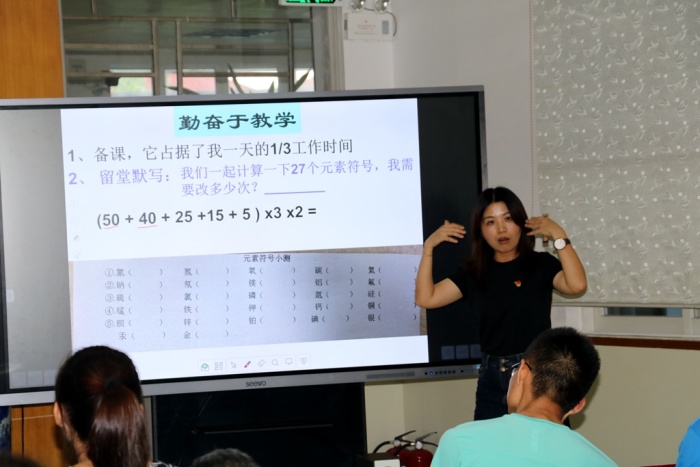 本次“身邊的榜樣分享會(huì)”分別由優(yōu)秀教師代表包小滿老師、黃瑞芳老師進(jìn)行分享交流。包小滿級長以《疫情下的2020屆中考備考》為專題,從級長管理崗位的角度與老師們分享了初三團(tuán)隊(duì)拼搏中考的經(jīng)歷。包級長帶領(lǐng)初三班主任、備課組長以及全體初三科任老師,發(fā)揮每個(gè)老師最大的積極性,勤奮實(shí)干,不計(jì)較,不抱怨,讓整個(gè)年級充滿著正能量,甘于奉獻(xiàn)成為了初三年級教師的主旋律。黃瑞芳老師分享《心有詩和遠(yuǎn)方》,則從教師個(gè)人成長的角度介紹她作為一位成功班主任的工作和體會(huì)。黃老師勤奮于教學(xué)、潛心于育人、執(zhí)著于個(gè)人專業(yè)發(fā)展的孜孜不倦的追求,執(zhí)著于對學(xué)校的熱愛、對學(xué)生的關(guān)愛和責(zé)任、對同事的熱情和真誠,贏得了同事們的肯定,贏得了無數(shù)學(xué)生和家長的熱愛和尊敬。參與分享的老師們不時(shí)會(huì)意地點(diǎn)頭認(rèn)同,不時(shí)為精彩而發(fā)出笑聲,不時(shí)報(bào)以熱烈的掌聲。