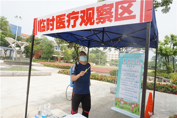 “同學(xué),你好!你的體溫偏高,現(xiàn)在額溫槍顯示為37.4℃,請再次配合檢測……體溫仍然偏高,顯示為37.4℃,請你稍等?!睘榇_保返校工作能夠平穩(wěn)有序地進行,經(jīng)學(xué)校多方籌備,8月30日上午,廣源學(xué)校舉行2020年秋季學(xué)期開學(xué)師生返校新冠肺炎疫情防控應(yīng)急處置演練,全體教職工參加了本次演練。