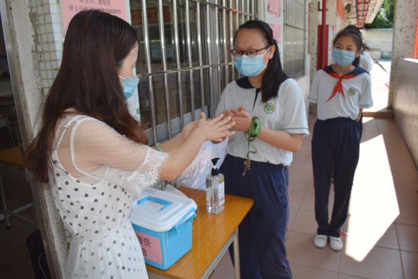 模擬學(xué)生放學(xué)時(shí),實(shí)行錯(cuò)時(shí)放學(xué)制度,放學(xué)時(shí)間提前告知家長(zhǎng),學(xué)生保持排隊(duì)間距,有序放學(xué)。乘坐校車的學(xué)生排好隊(duì)伍、保持1米間距,有序等待跟車?yán)蠋煖y(cè)量體溫、洗手后方可上車入座。學(xué)生離校后,班主任老師將教室清掃通風(fēng),對(duì)教室進(jìn)行全面消毒。