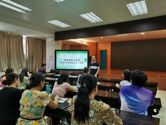 班主任是學(xué)校德育工作的中堅力量。新學(xué)期煙洲小學(xué)又迎來了一批充滿活力的新班主任。為促進班級管理,提升德育工作實效性,在學(xué)校德育處的大力支持下,煙洲小學(xué)首席班主任工作室主持人陳儀妹老師的引領(lǐng)下,9月12日下午,在學(xué)校一樓多功能室成功召開了一次班主任工作培訓(xùn)會議。首席班主任工作室承擔(dān)了本次培訓(xùn)工作。副校長楊志堅、主任肖呂純、工作室主持人陳儀妹老師以及班主任工作室成員和全體班主任參加了此次活動。