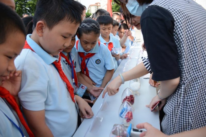 為了讓同學(xué)們學(xué)會(huì)辨認(rèn)新型毒品,社工人員還給同學(xué)們現(xiàn)場展示了“搖頭丸”“浴鹽”等十幾種仿真新型毒品樣本,吸引了很多師生們駐足觀看,同時(shí)他們還向同學(xué)們發(fā)放了禁毒宣傳手冊,通過多種方式讓同學(xué)們提高識(shí)毒、防毒、禁毒意識(shí)。