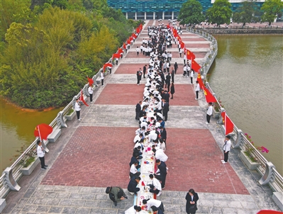 同學們在長長的校道上繪制畫卷。本報記者 文波 攝