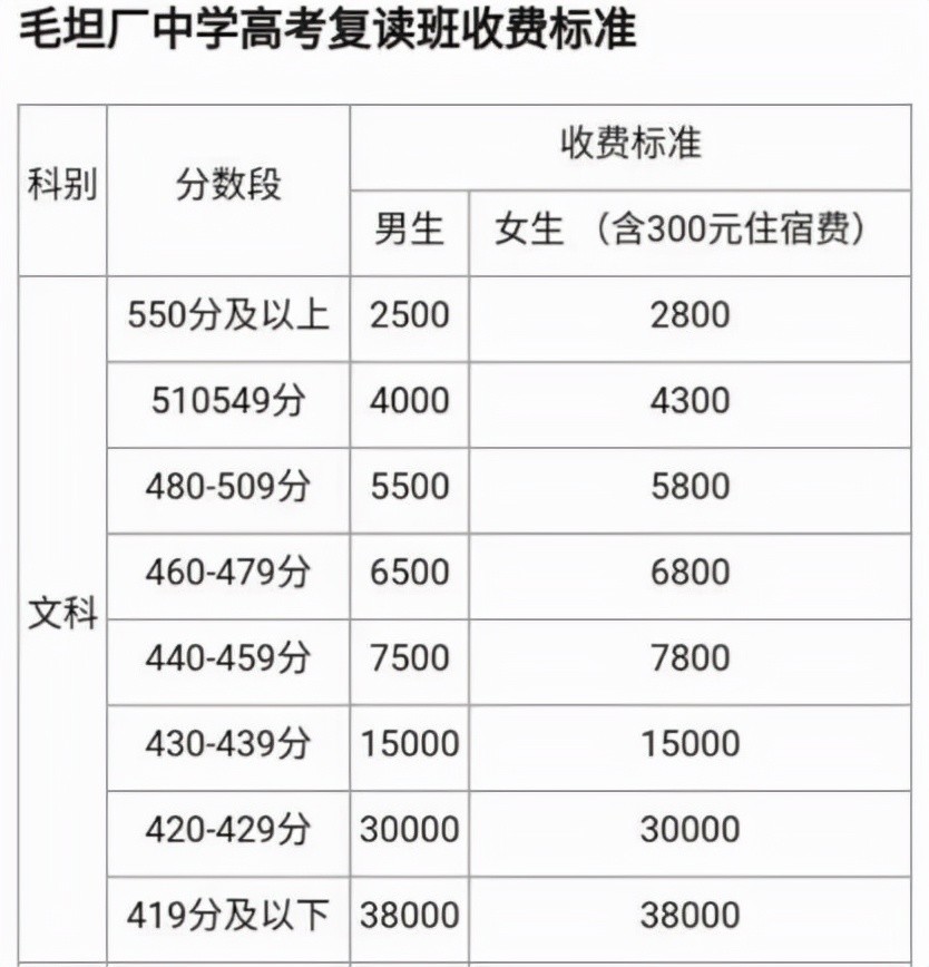 一、安徽省六安市毛坦廠高考實(shí)習(xí)學(xué)校的收費(fèi)情況