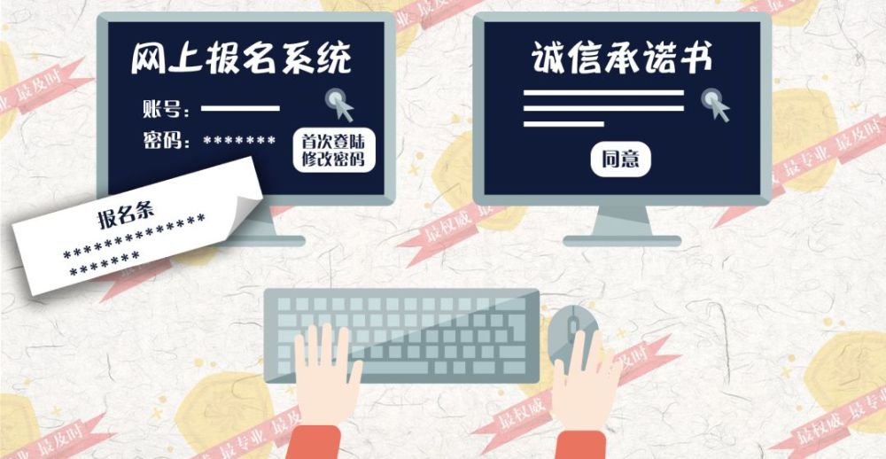 憑報(bào)名條進(jìn)入網(wǎng)上報(bào)名系統(tǒng)。初次登錄時(shí),要修改密碼,閱讀誠信承諾書并點(diǎn)擊“同意”。