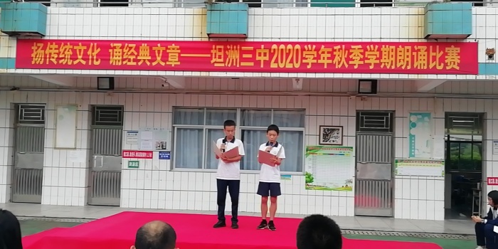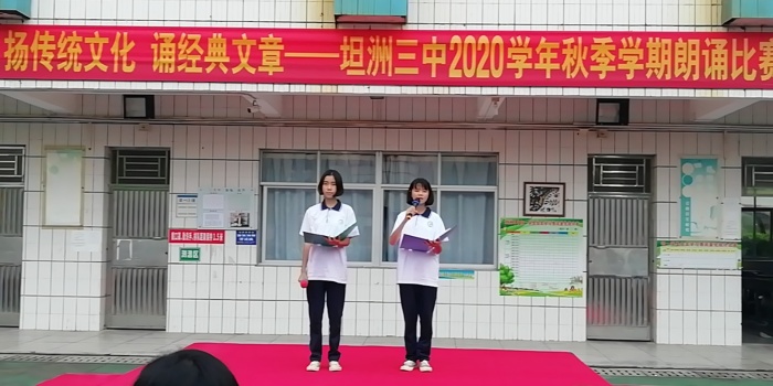 揚(yáng)傳統(tǒng)文化,誦經(jīng)典文章——坦洲三中舉辦2020年秋季學(xué)期朗誦比賽發(fā)布時(shí)間:2020-09-27 15:27 信息來源:本網(wǎng)站 瀏覽次數(shù):0