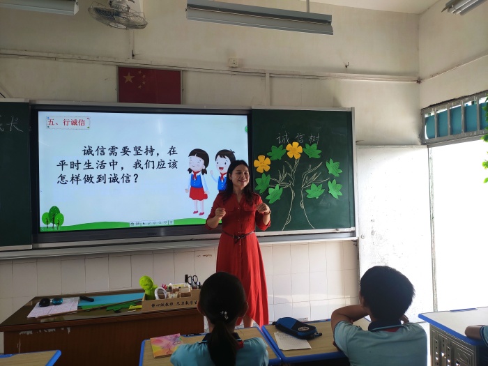 參加展示課的老師精心備課,各展所能。班會課主題鮮明,貼近班級實際,德育目標(biāo)清晰,每節(jié)課風(fēng)格各異且精彩紛呈。周杰珊老師以“成長樹”的設(shè)置為主線,新穎有趣,符合一年級學(xué)生的年齡特點,師生互動輕松自然;鐘冬梅老師班會課主題鮮明,思路清晰,由淺入深,學(xué)生沒有被說教束縛,卻在不覺中明白了其中道理,充分展示了教師自如的課堂駕馭能力;甘海鳳老師班會課主題,雖平凡又不平凡,簡單的問題簡單講,感恩教育銘記于心,觸動學(xué)生心靈……