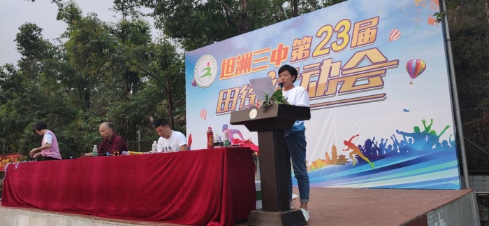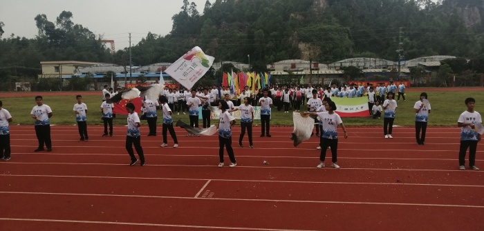 莊嚴(yán)肅穆的升國旗儀式后,朱漢業(yè)校長宣布運(yùn)動會開幕。德育處艾金全主任致開幕詞,他回顧了坦洲三中過去一年所取得的輝煌成就,對全校師生積極參與到運(yùn)動會中去提出期望,還對全體運(yùn)動員、裁判員及觀眾提出了要求。他希望全體運(yùn)動員要奮勇爭先、再接再厲,在運(yùn)動會中賽出風(fēng)格、賽出水平,并對運(yùn)動會圓滿成功提出美好祝愿。裁判員代表吳境聰老師、運(yùn)動員代表李智杰同學(xué)分別向大會進(jìn)行了宣誓,鼓樂隊(duì)、咸水歌表演了精彩的節(jié)目。