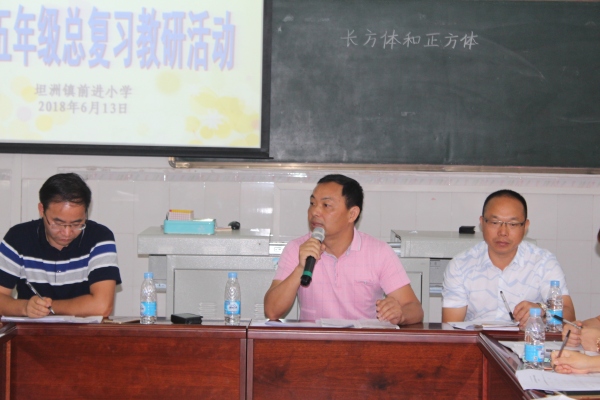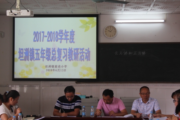 為了迎接中山市教育和文體局對(duì)全市五年級(jí)學(xué)生進(jìn)行質(zhì)量監(jiān)測(cè),為了使老師更好的進(jìn)行期末總復(fù)習(xí),6月13日,坦洲鎮(zhèn)五年級(jí)總復(fù)習(xí)的教學(xué)研討活動(dòng)在坦洲鎮(zhèn)前進(jìn)小學(xué)舉行。坦洲鎮(zhèn)數(shù)學(xué)教研員劉偉光老師、坦洲名師工作室肖相橋老師、前進(jìn)小學(xué)郭炳森校長(zhǎng)和前進(jìn)小學(xué)許思科副校長(zhǎng)出席了本次活動(dòng),一起參加活動(dòng)的還有全鎮(zhèn)五年級(jí)奮戰(zhàn)一線的數(shù)學(xué)老師和前進(jìn)小學(xué)全體數(shù)學(xué)老師。