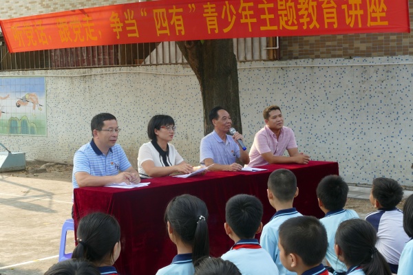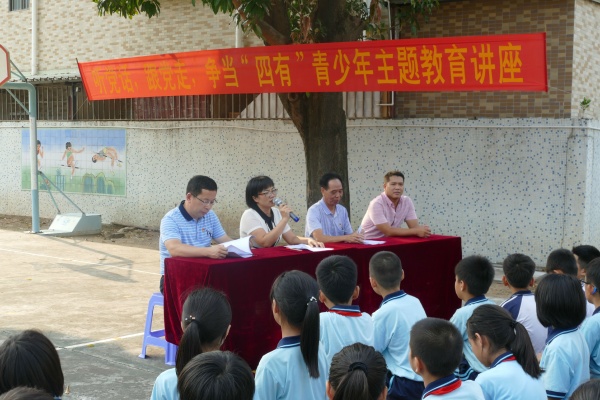 在講座中,張云老師先對學(xué)生進行了簡單的黨史知識教育,再通過一些革命先烈的英雄事跡或小故事,讓學(xué)生更好地理解“四有”青少年的真正含義,鼓勵學(xué)生學(xué)會學(xué)習(xí)、學(xué)會做人,爭做“四有”好少年。張云老師精彩的小故事,幽默風(fēng)趣的語言,讓會場響起了陣陣快樂的笑聲。第二個環(huán)節(jié)是高金勝爺爺以《贊同勝小學(xué)》和《十九大精神》兩首咸水歌,不僅贊頌了同勝小學(xué)的好校風(fēng)、好教風(fēng)、好學(xué)風(fēng)更歌頌了再歌黨十九大精神的深入民心。高爺爺悠揚的歌聲、地道的咸水歌,贏得了學(xué)生熱烈的掌聲。