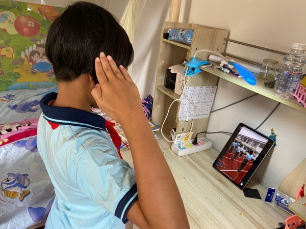 三年級學(xué)生還沒復(fù)學(xué),但也在家里參與線上升國旗儀式
