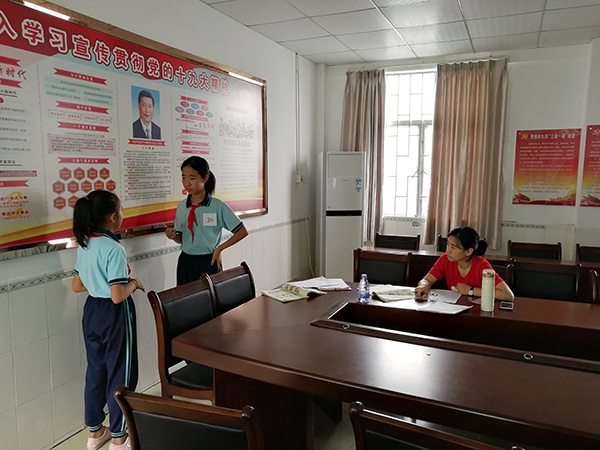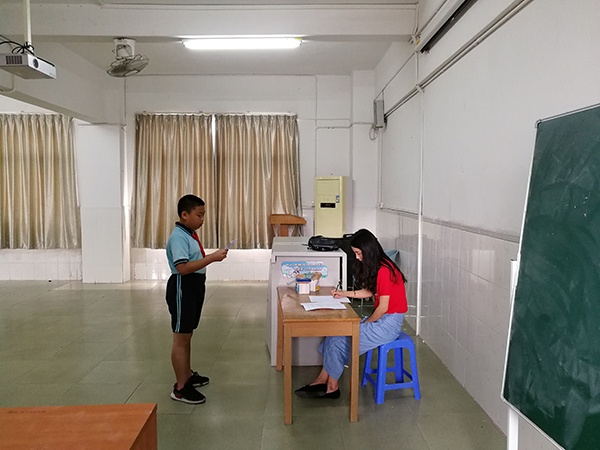 英語口語表達能力的培養(yǎng),是英語教學的一個重要內(nèi)容。坦洲鎮(zhèn)永一小學的英語老師非常重視對學生英語口語能力的培養(yǎng),積極開展《數(shù)字化環(huán)境下鄉(xiāng)鎮(zhèn)小學學生英語口語能力培養(yǎng)的研究》這一市級立項課題的研究。為了全面考核學生的口語表達能力,檢測課題開展的效果,5月15日上午,永一小學對參與課題研究的三到五年級的學生開展“英語口語能力測評活動”。