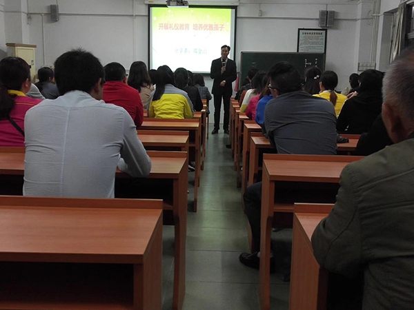 首先,由中山市家庭教育指導(dǎo)服務(wù)中心教師鄭金山老師進(jìn)行主講。鄭老師為全校家長們作主題為《開展禮儀教育,培養(yǎng)優(yōu)雅孩子》的專題講座。鄭老師在講座中指出:禮儀使人文明,道德使人高尚。鄭老師分別從兒童禮儀的基本動作、禮貌用語、個人禮儀、交往禮儀、家庭禮儀、公共場所禮儀等方面,給家長提出了許多關(guān)于兒童禮儀教育的方法建議,為規(guī)范孩子的文明舉止、提升孩子的素質(zhì)和自尊,作出了明確的指導(dǎo)。同時鄭老師希望每位家長都能以身作則,用自己的實際行動為孩子做好榜樣。