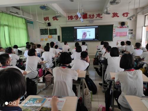 然后讓同學們各抒己見,鼓勵他們大膽地說出自己的看法,盡管他們還戴著口罩,但是生動有趣的視頻消除了彼此間的緊張感和距離感。