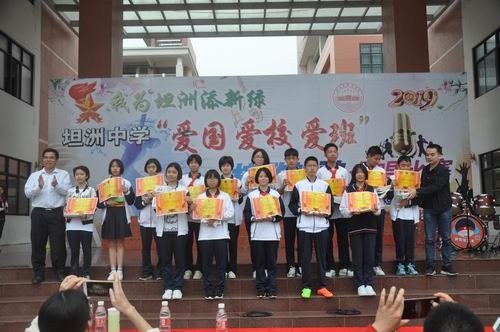比賽進(jìn)入高潮,坦洲中學(xué)吳劍文校長和鎮(zhèn)關(guān)工委羅北成副主任為獲獎(jiǎng)的班級(jí)頒發(fā)獎(jiǎng)狀和獎(jiǎng)品,并進(jìn)行了總結(jié)性發(fā)言。在發(fā)言中,吳校長對(duì)在這次活動(dòng)中付出努力和辛勞的每一位學(xué)生和老師表達(dá)了贊賞和感謝之情,并宣布“愛國、愛校、愛班”——坦洲中學(xué)初一年級(jí)校歌班歌合唱比賽圓滿落下帷幕!