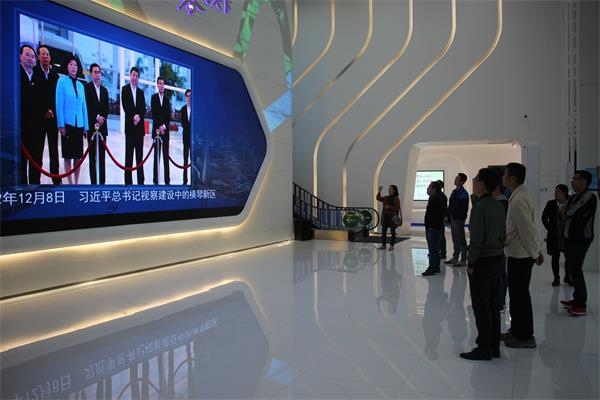 隨后,在珠海橫琴新區(qū)展示廳,豐富的圖片、視頻、三維模型生動展現(xiàn)了橫琴發(fā)生的歷史巨變。五年間,橫琴從國家級新區(qū)到自貿(mào)實驗區(qū),再到如今步入大灣區(qū)時代,已經(jīng)由一座海島蛻變成一座現(xiàn)代化自貿(mào)新城。通過觸摸屏、多點互動桌面和沙盤互動,黨員們進(jìn)一步了解到橫琴的城市設(shè)計及建筑規(guī)劃成果,感受到粵港澳大灣區(qū)的美好未來。