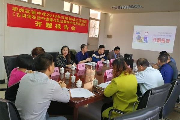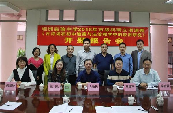 11月23日下午,中山市坦洲實(shí)驗(yàn)中學(xué)行政三樓會(huì)議高朋滿座,中山市教研室教研員方鐵民、蘭嵐、夏建軍齊聚中山最南端的邊陲小鎮(zhèn),為該校2018年市級(jí)立項(xiàng)課題《古詩(shī)詞在道德與法治教學(xué)中的應(yīng)用研究》開(kāi)題把關(guān)指導(dǎo),坦洲實(shí)驗(yàn)中學(xué)校長(zhǎng)梁格青、教學(xué)副校長(zhǎng)高艷玲、教導(dǎo)處副主任何曉華等領(lǐng)導(dǎo),以及該課題的全體成員出席了這場(chǎng)被嘉賓贊為“高大上”的教科研活動(dòng)。