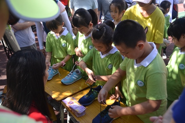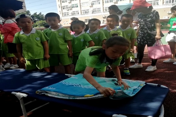 第二個(gè)議程是自由活動(dòng)——參加能力大考驗(yàn)。老師們精心準(zhǔn)備了“我會(huì)系紅領(lǐng)巾”、“我會(huì)疊被子”、“我會(huì)綁鞋帶”、“我有一雙干凈的小手”、“我會(huì)整理書包”、“我會(huì)疊衣服”“、“我會(huì)綁跳繩”、“我會(huì)整理課桌”8個(gè)項(xiàng)目來考驗(yàn)孩子們的生活自理能力。當(dāng)不少家長(zhǎng)發(fā)現(xiàn)孩子疊被子有困難時(shí),都及時(shí)的耐心指導(dǎo),不僅提高了孩子們的自立能力,同時(shí)也讓家長(zhǎng)意識(shí)到生活中應(yīng)該養(yǎng)成好習(xí)慣。