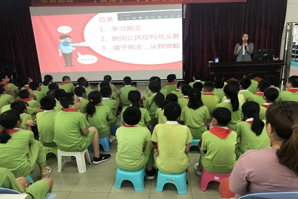 為使全校師生更好地樹立學(xué)法、知法、懂法、守法意識(shí),進(jìn)一步增強(qiáng)法制觀念,營造和諧、安定、健康的校園環(huán)境。2019年5月29日,中山市廣大匯翠學(xué)校邀請(qǐng)廣州凱行(坦洲)律師事務(wù)所鐘丹丹律師為全校師生帶來了《憲法在我心,普法伴我行》的專題法律講座。
