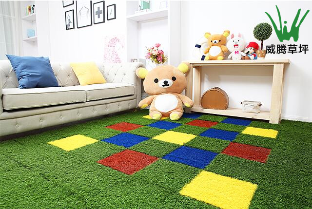 四、威騰拼塊草坪可DIY顏色搭配。目前已推出紫色、綠色、土紅、大紅、湖藍(lán)、灰色、黃色、白色、藍(lán)色、黑色10種顏色可供消費者自由選擇搭配,DIY出自己的好心情。