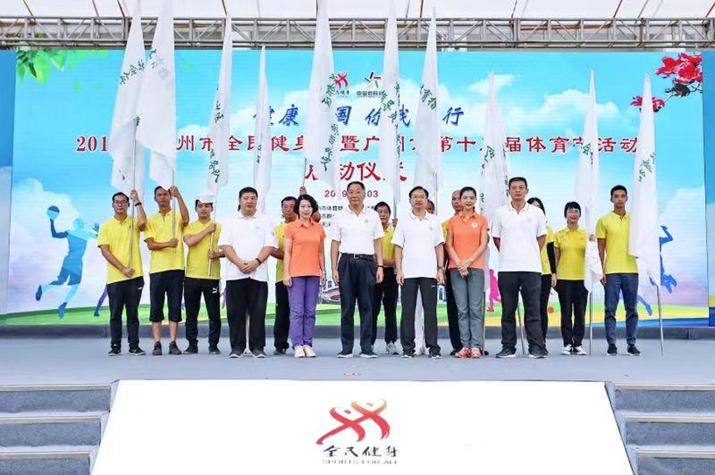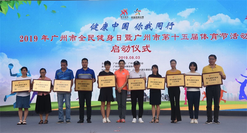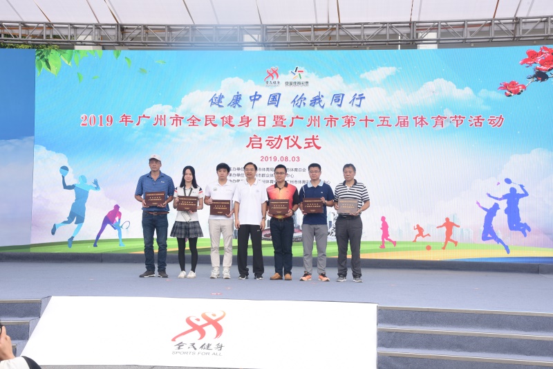啟動儀式上,廣州市政府副秘書長張建華為來自全市11區(qū)的社會體育指導員志愿者服務隊代表進行授旗,并宣布活動開幕。廣州市體育局、廣州市體育總會領導分別為獲得“2018年度市屬體育協(xié)會年度考核5星級協(xié)會”和“群體通惠民服務示范場館”頒發(fā)牌匾。