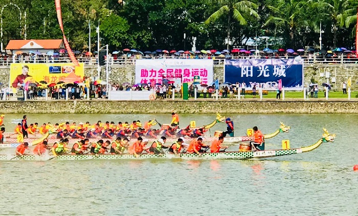 油城茂名風(fēng)和日麗,小東江碧波蕩漾,2019年廣東龍舟錦標賽日前在此進行激烈角逐。