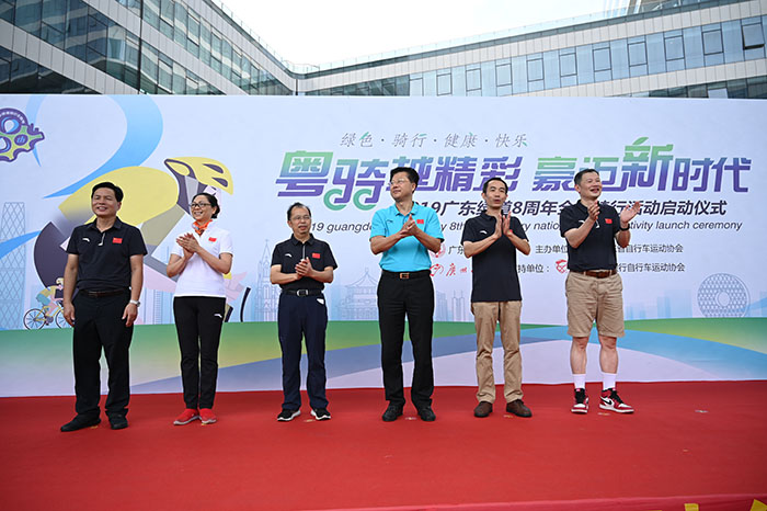 廣東省黃村體育訓(xùn)練中心主任、廣東省自行車運動協(xié)會主席蔡建祥,廣東省體育局群體處處長鐘志金,廣州日報社編委、體育新聞中心主任陳偉勝,廣州日報新媒體編輯部負責(zé)人、大洋網(wǎng)總編輯曹蘇寧,廣東省體育局群體處副處長楊英,廣東省體育局青少年訓(xùn)練競賽中心副主任姜永軍,廣東省自行車運動協(xié)會秘書長戚宇等領(lǐng)導(dǎo)和嘉賓出席啟動儀式,并為騎行活動鳴笛發(fā)車。