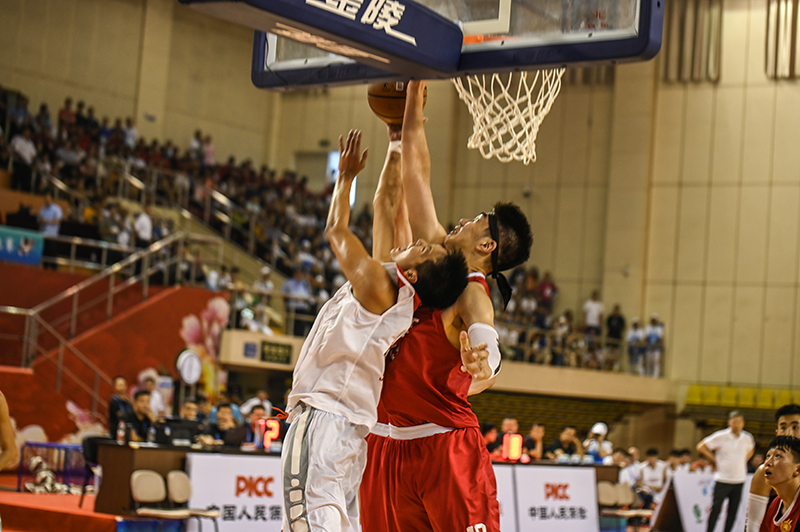余嘉豪(紅)籃下防守