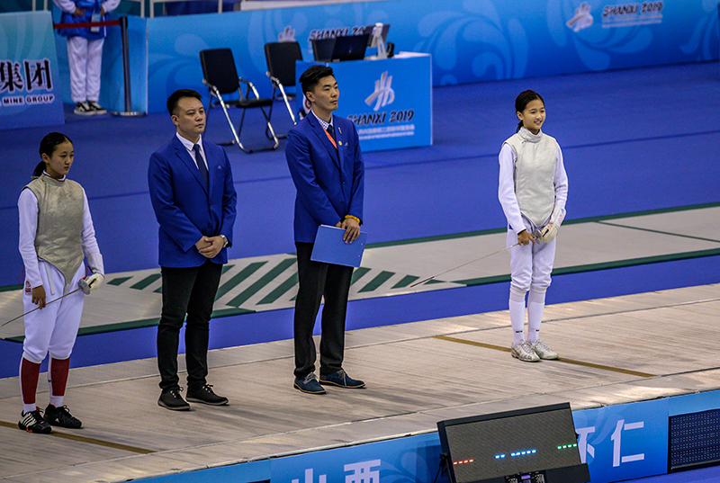 決賽當(dāng)日,記者這早早守候在懷仁市體育館,等待沈玨玲瓏的登場(chǎng),她將面對(duì)北京選手劉依陽(yáng)。賽前,雙方隊(duì)員就位,沈玨玲瓏笑容滿面,身材纖細(xì),斯文有禮,與“劍客”身份略有差異。記者了解到,擊劍是她的愛(ài)好,她也更愿意用愛(ài)好維持對(duì)擊劍的熱愛(ài)。