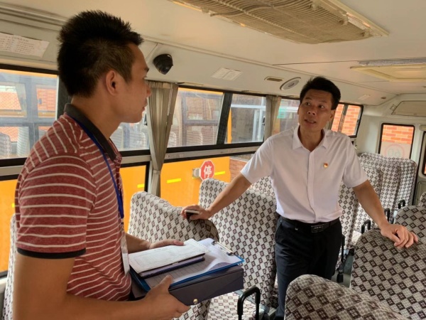 檢查組一行首先對(duì)南頭鎮(zhèn)華暉學(xué)校、三鑫學(xué)校等7輛專用校車逐一進(jìn)行了詳細(xì)檢查,重點(diǎn)檢查了校車車況、應(yīng)急設(shè)備配備、校車行駛路線、校車司機(jī)配備及持證等方面情況。在檢查中發(fā)現(xiàn)的問題檢查組都現(xiàn)場(chǎng)責(zé)令相關(guān)學(xué)校負(fù)責(zé)人要盡快整改。
