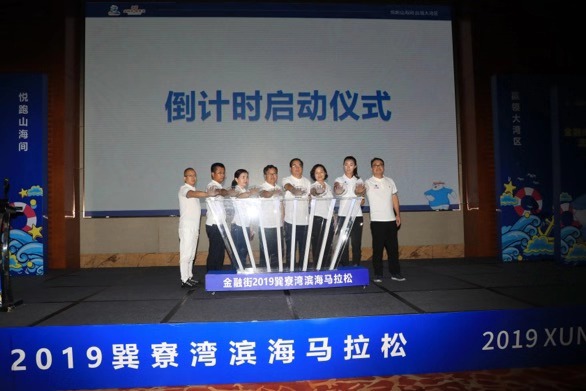 最后,“巽馬”組委會(huì)進(jìn)行了賽事倒計(jì)時(shí)啟動(dòng)儀式,惠州市文化廣電旅游體育局黨組成員賴成偉,惠東縣人民政府副縣長(zhǎng)楊偉斌,惠東縣文化廣電旅游體育局黨組書記、局長(zhǎng)溫雪映,巽寮濱海旅游度假區(qū)管理委員會(huì)主任陳達(dá)婷,金融街惠州置業(yè)有限公司董事長(zhǎng)錢海民,金融街惠州置業(yè)有限公司總經(jīng)理梁成藝,廣州博潤(rùn)體育科技有限公司總裁易偉新,以及賽事形象代言人焦安靜共同啟動(dòng)金融街2019巽寮灣濱海馬拉松倒計(jì)時(shí)。