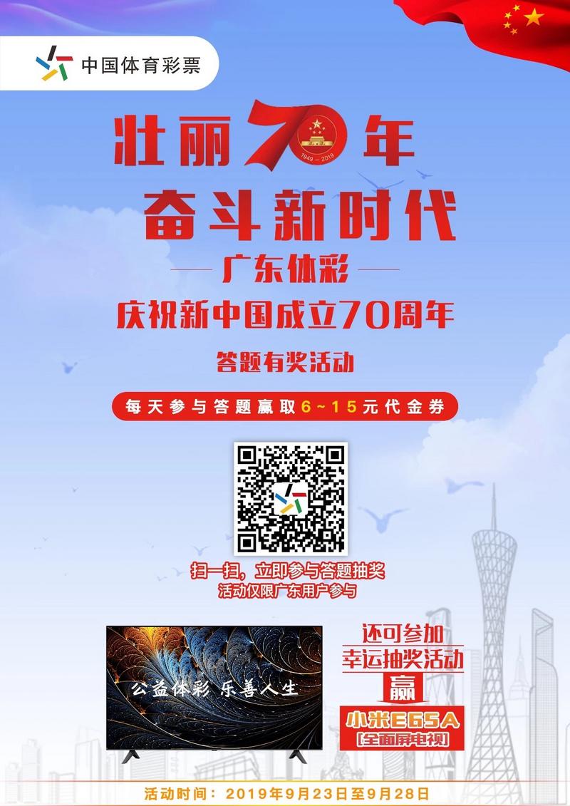 在新中國(guó)成立70周年到來之際,廣東體彩開展答題有獎(jiǎng)活動(dòng),宣傳新中國(guó)的歷史、新中國(guó)的成就和新時(shí)代賦予的青年使命,高舉主旋律,弘揚(yáng)正能量,積極引導(dǎo)參與者更加熱愛祖國(guó)、熱愛黨。