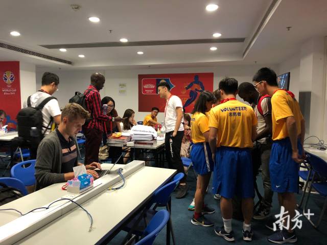 2分鐘時(shí)間,13場(chǎng)比賽,每場(chǎng)5份不同的數(shù)據(jù)表,上百人的媒體工作者,這是M數(shù)據(jù)遞送助理每天最緊張的兩分鐘。這個(gè)交接的瞬間幾乎每天都在發(fā)生,但宣傳部攝影師嘗試了好多次都沒(méi)有抓到這個(gè)畫(huà)面。志愿者洪海峰說(shuō)“我們得搶時(shí)間,每次上樓一轉(zhuǎn)身就看不到攝影師了”。