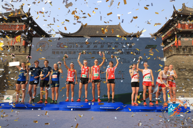 10月27日在南海影視城進行的比賽有兩場,首先進行的是定向世界杯決賽短距離混合接力賽。短距離混合接力賽是團隊賽,考驗團隊的實力和配合度,由四人組成的團隊“短兵相接”,最先通過終點者勝出。接力賽變數(shù)較多,成績可預見性低,從而也成就了其觀賞性強的特點,無論是參賽選手還是觀眾都能很好地感受到比賽激烈緊張的氣氛。此外,與第一場在西樵山進行的中距離賽不同,本場短距離混合接力賽所在的場地地理條件限制少、可跑性也較強。