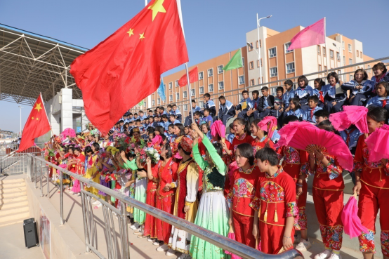 10月14日,調(diào)研組首先來(lái)到疏附縣薩依巴格鄉(xiāng)庫(kù)普色額小學(xué),廣東省體育局援疆干部王亮每周都會(huì)到這里進(jìn)行兩次支教,三年前,學(xué)校的足球場(chǎng)還是土場(chǎng),在廣東援疆的幫助下,一年內(nèi)鋪建了嶄新的人造草足球場(chǎng),孩子們?cè)谇驁?chǎng)上開心的踢球。薩依巴格鄉(xiāng)庫(kù)普色額小學(xué)向廣東省體育局及廣東省體育局援疆干部王亮贈(zèng)送了寫有“情系心房,大愛無(wú)疆”、“愛心情無(wú)價(jià),助學(xué)義似?!钡膬擅驽\旗。