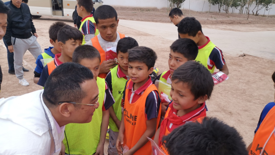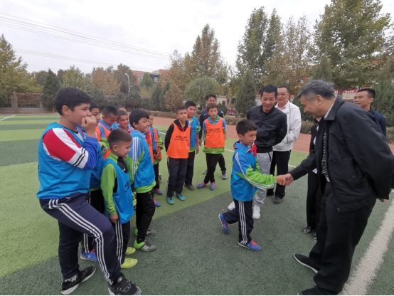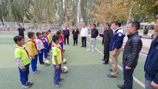 隨后廣東省體育局援疆工作調(diào)研組一行來(lái)到疏附縣明德小學(xué),這是一所足球特色學(xué)校,現(xiàn)在在富力足校踢球的伊木然就是明德小學(xué)的學(xué)生,他從富力足校的選拔中脫穎而出,被選到富力足校學(xué)習(xí)踢球。在明德小學(xué)訓(xùn)練場(chǎng)上,調(diào)研組遇到了從廣州市天河區(qū)啟慧學(xué)校到疏附縣明德小學(xué)進(jìn)行足球援疆的許均猛老師,柯國(guó)洪副巡視員詢問許均猛老師的訓(xùn)練和支教情況,并鼓勵(lì)他為廣東足球援疆做出貢獻(xiàn)。