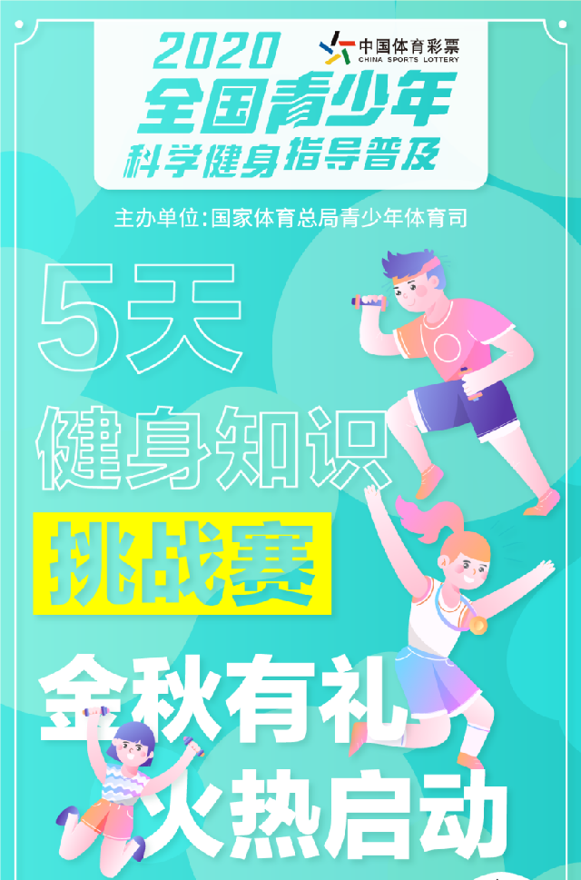 來了!由國(guó)家體育總局青少年體育司主辦,國(guó)家體育總局體育科學(xué)研究院承辦,廣東原動(dòng)力信息科技有限責(zé)任公司執(zhí)行的“2020年全國(guó)青少年科學(xué)健身指導(dǎo)普及——5天健身知識(shí)挑戰(zhàn)賽”國(guó)慶正式啟動(dòng)!陪你度過一個(gè)有意義的黃金假期!
