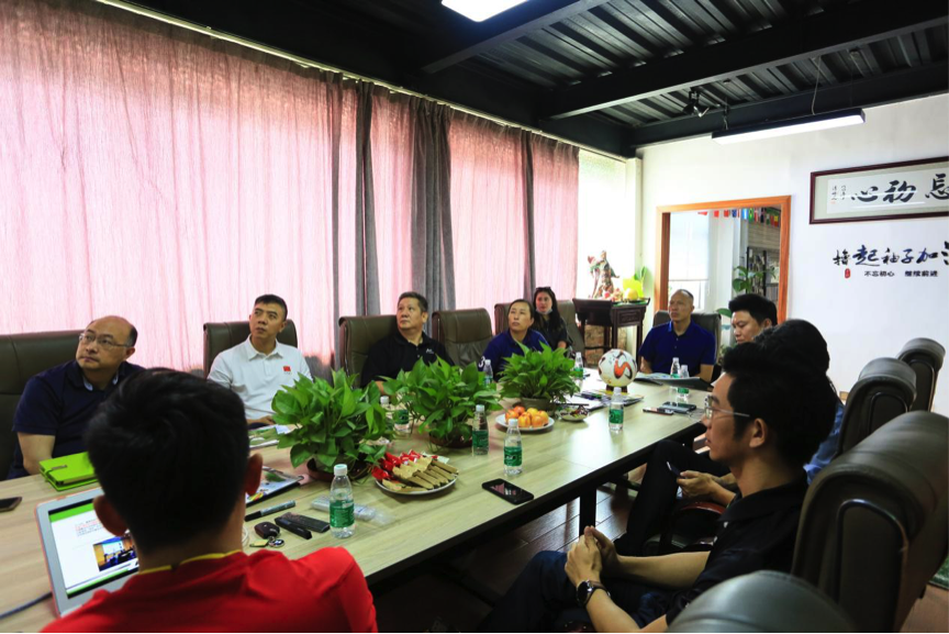 近日,廣東省體育局體育產(chǎn)業(yè)與科教宣傳處處長(zhǎng)庾偉健、副調(diào)研員朱志剛,省體育局青少處副處長(zhǎng)羅茜、廣東省足球協(xié)會(huì)副秘書長(zhǎng)席兵等一行到中國(guó)足協(xié)·中國(guó)之隊(duì)足球器材服務(wù)商——“愛高體育”總部進(jìn)行調(diào)研,愛高體育董事長(zhǎng)梁廣仁、運(yùn)營(yíng)總監(jiān)梁嘉華、愛高孵化足球管理咨詢項(xiàng)目共鳴體育聯(lián)合創(chuàng)始人曾祥禮介紹了企業(yè)發(fā)展及產(chǎn)品生產(chǎn)等情況。