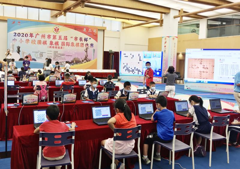 在早前結(jié)束的三棋團(tuán)體賽中,有別于往年的線下分區(qū)賽,采用了線上網(wǎng)絡(luò)預(yù)選賽的方式在全市鋪開,參賽選手足不出戶通過網(wǎng)絡(luò)比賽平臺(tái)就能進(jìn)行對(duì)弈,組委會(huì)為了讓緩解線上比賽的“距離感”、讓市民朋友更直觀感受網(wǎng)絡(luò)比賽的氣氛,還特別邀請(qǐng)了圍棋、象棋、國(guó)際象棋各十名棋手在廣州棋院現(xiàn)場(chǎng)展開實(shí)時(shí)線上對(duì)決,,現(xiàn)場(chǎng)的三個(gè)實(shí)時(shí)觀賽大屏分別呈現(xiàn)出圍棋、象棋、國(guó)際象棋“三棋”同場(chǎng)競(jìng)技、線上線下交相輝映的場(chǎng)面,成為本次網(wǎng)絡(luò)預(yù)選賽的一道亮麗的風(fēng)景線。