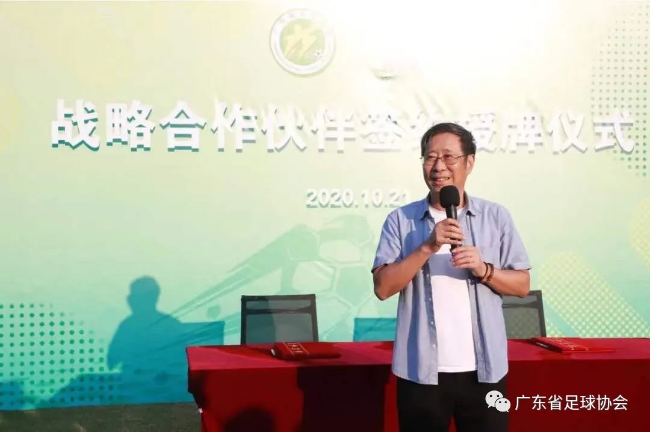儀式上,廣東省足球運(yùn)動(dòng)中心主任、廣東省足球協(xié)會(huì)副主席程志文與朝向集團(tuán)董事長陳朝行代表雙方簽署合約,程志文主任向陳朝行董事長頒發(fā)“戰(zhàn)略合作伙伴”榮譽(yù)牌匾。