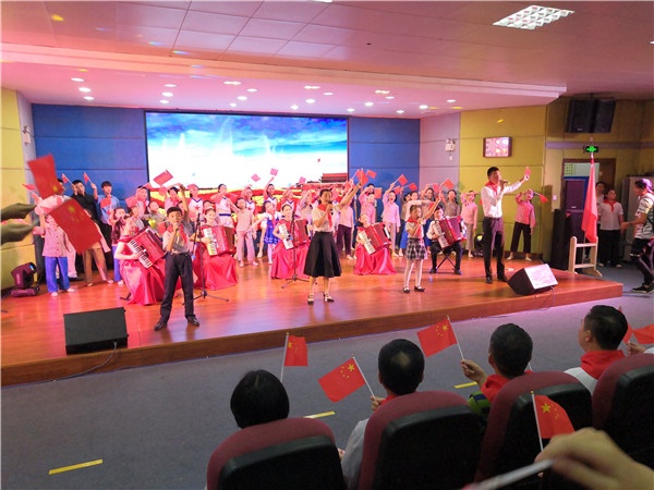 本次隊日活動緊扣主題,發(fā)掘南區(qū)的紅色文化和僑鄉(xiāng)文化,結合對偉大祖國70周年華誕的美好祝福,通過六個篇章的演繹,展現(xiàn)了新時代少先隊員富有朝氣、充滿活力、積極向上的精神風貌,是對少先隊員進行社會主義核心價值觀教育的一次良好實踐。其中,紅領巾快閃融合手風琴演奏、獨唱、合唱、健美操等多種形式,調動了現(xiàn)場觀眾的熱情,大家齊唱《我和我的祖國》,將活動推向高潮。
