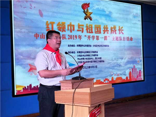 9月2日,開學第一天,以“我是新時代好隊員,我與祖國共成長”為主題的中山市少先隊2019年“開學第一課”主題隊日活動在中山市僑中英才學校舉行。市委副書記陳文鋒,團市委書記李凱航,南區(qū)黨工委書記郭淵,團市委副書記、市少工委主任李曉鳴,市教體局、市婦聯(lián)、市關工委等相關單位領導,以及全市各基層團委、團工委書記、少工委主任、少先隊總輔導員、少先隊員代表230人出席本次活動。