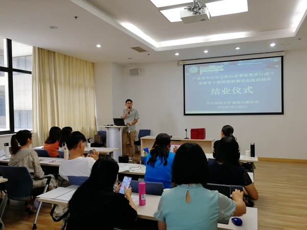 接著,五桂山學(xué)校劉繼恭副校長進(jìn)行領(lǐng)導(dǎo)致辭。劉校長感謝華東師大教科所的教師們分享了教育前沿的理論知識,感謝五桂山教育事務(wù)指導(dǎo)中心的領(lǐng)導(dǎo)給予大家學(xué)習(xí)培訓(xùn)的機(jī)會,感謝在座教師認(rèn)真聽講和思考的學(xué)習(xí)精神,同時希望教師們在學(xué)成后認(rèn)真總結(jié),將學(xué)習(xí)中所產(chǎn)生的收獲運(yùn)用到教學(xué)工作中,爭取在日后的教學(xué)中取得更加優(yōu)秀的成績。